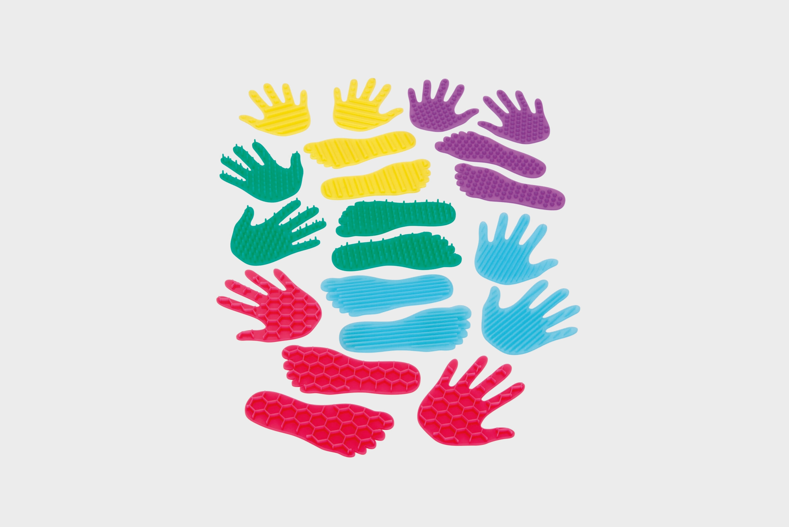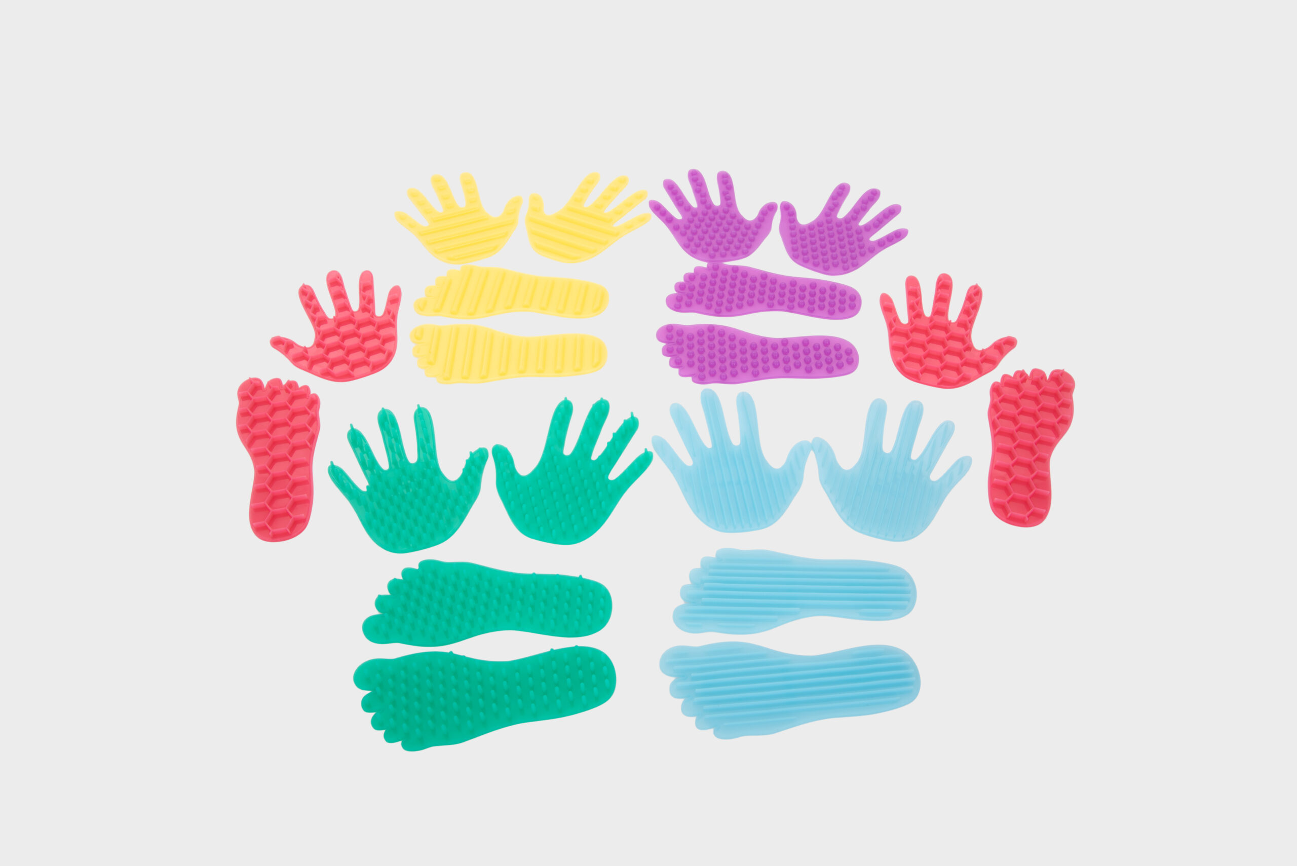 - 10 párů silikonových rukou a chodidel s různými texturami