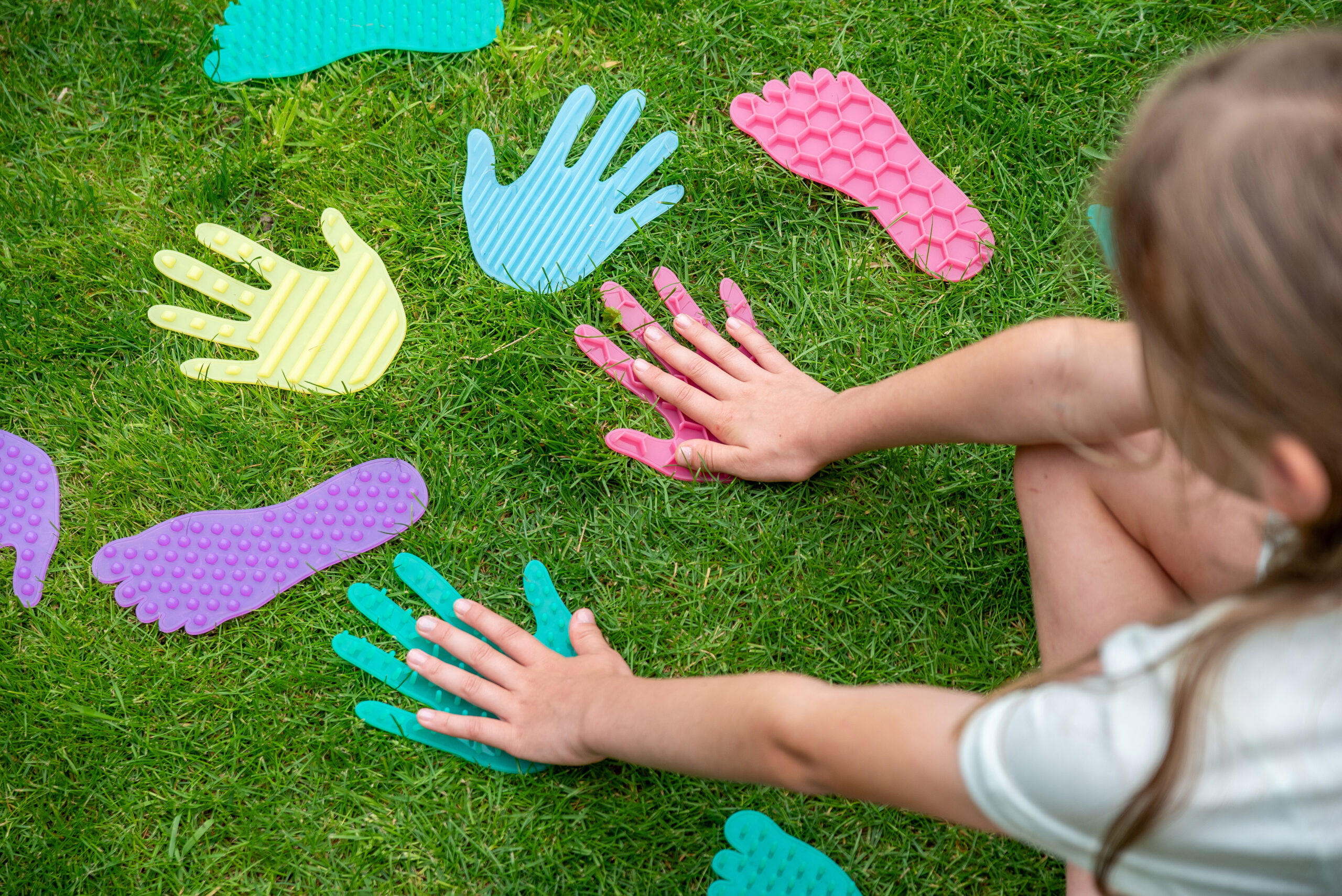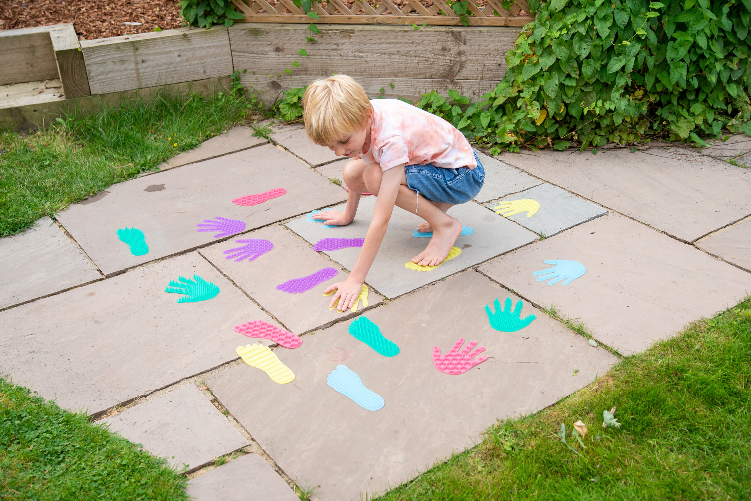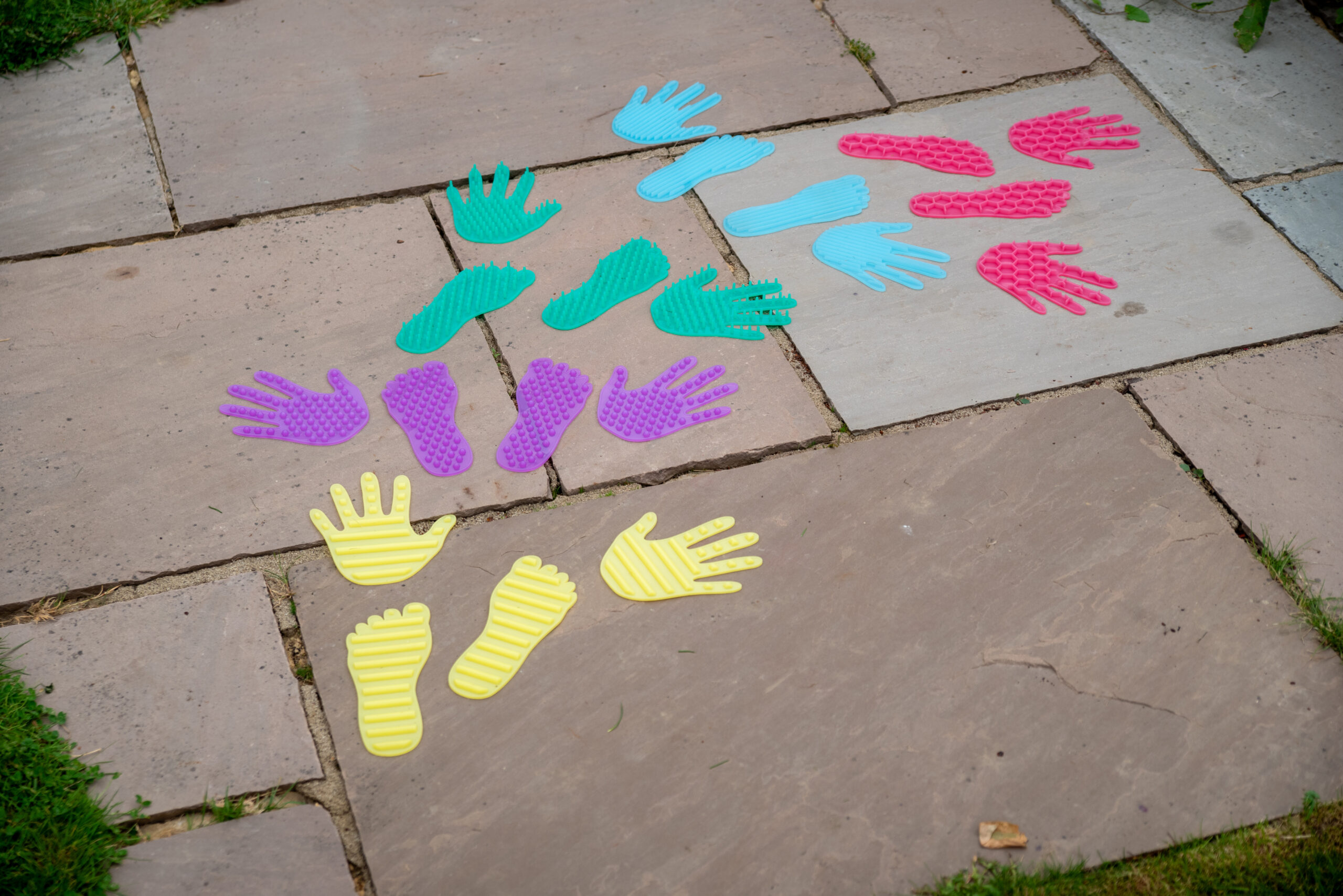Produkt podporuje rozvoj hrubé i jemné motoriky, koordinace pohybů, rovnováhy a prostorové orientace. Díky různým texturám rozvíjí hmatové vnímání a smyslovou integraci. Děti se učí rozlišovat povrchy, barvy a tvary, což přispívá také k rozvoji slovní zásoby. Sada je vhodná pro pohybové hry, smyslové dráhy i aktivity zaměřené na uvědomění si vlastního těla.