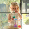 TickiT Sensory Dual Rainbow Cascade je fascinující smyslová vizuální pomůcka, která upoutá pozornost dětí i dospělých díky dvěma proudům barevné tekutiny, které pomalu klesají v kapičkách různou rychlostí. Když se kaskáda otočí, vzniká krásný a uklidňující efekt, který přirozeně podporuje soustředění, klid a vizuální pozorování.