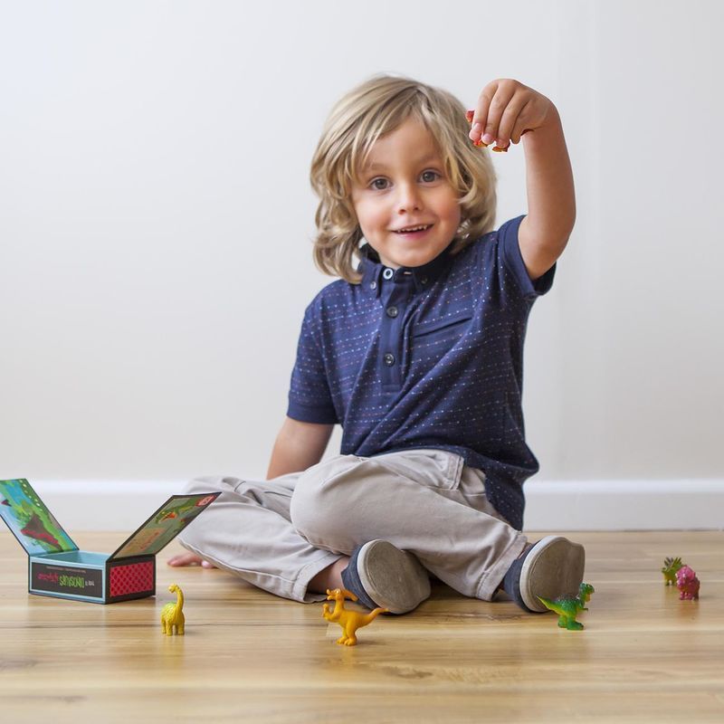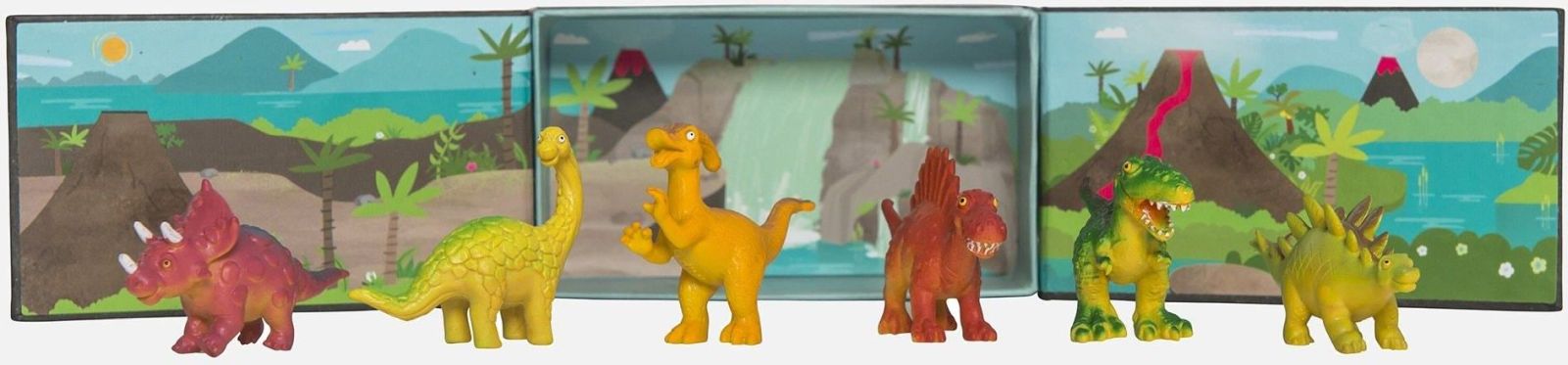 - Obsah balení: 6 mini figurek dinosaurů + magneticky zavírací krabička s ilustrovaným pozadím