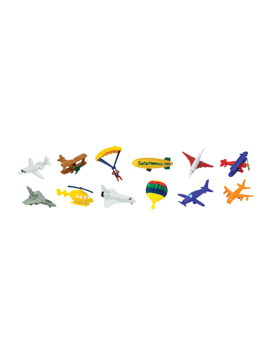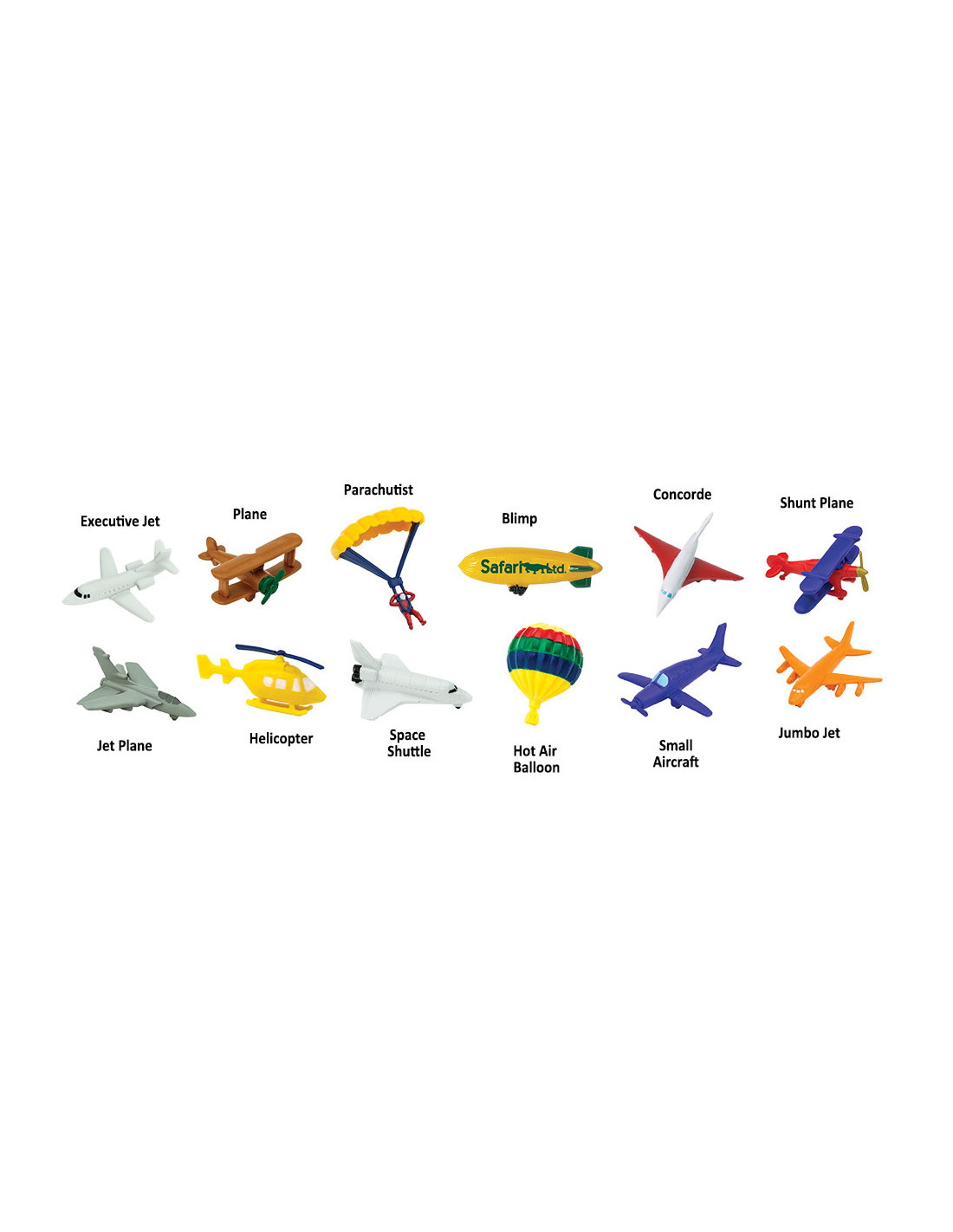 Tuba obsahuje 12 vzdušných dopravních prostředků od tryskového letadla přes horkovzdušný balon či vzducholoď, nechybí ani parašutista.