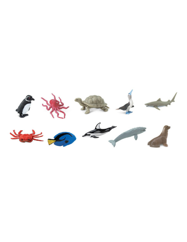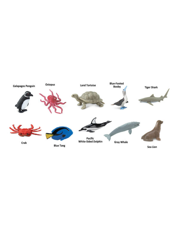 Tato sada ručně malovaných postav zahrnuje různé druhy zvířat, které se nachází v Tichém oceánu.