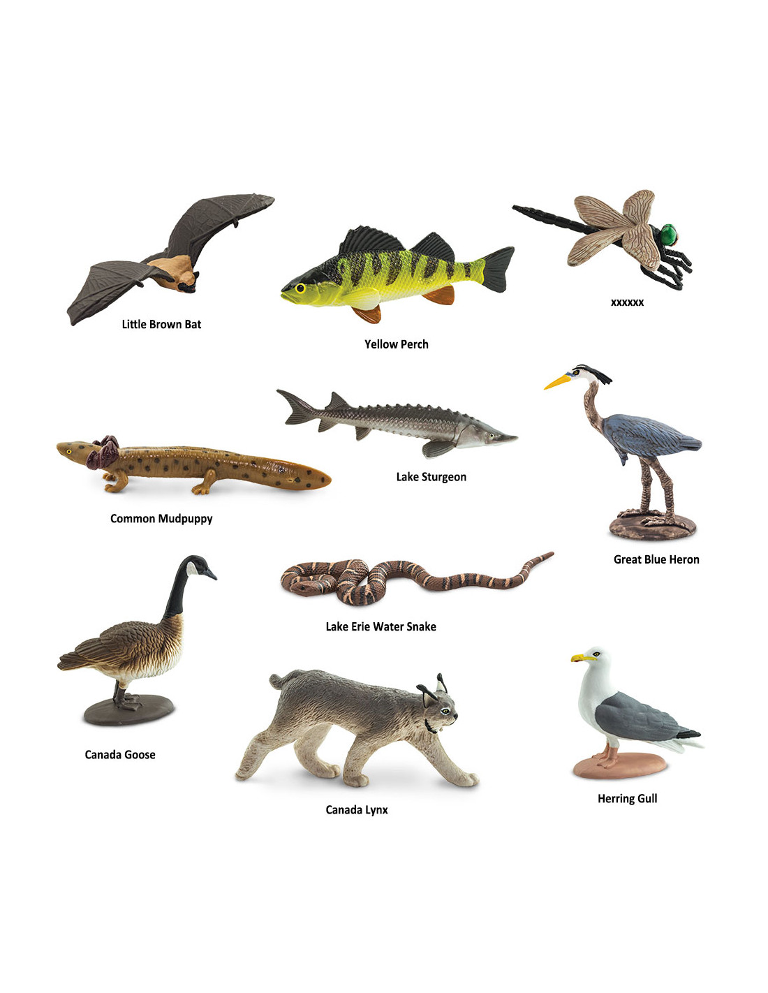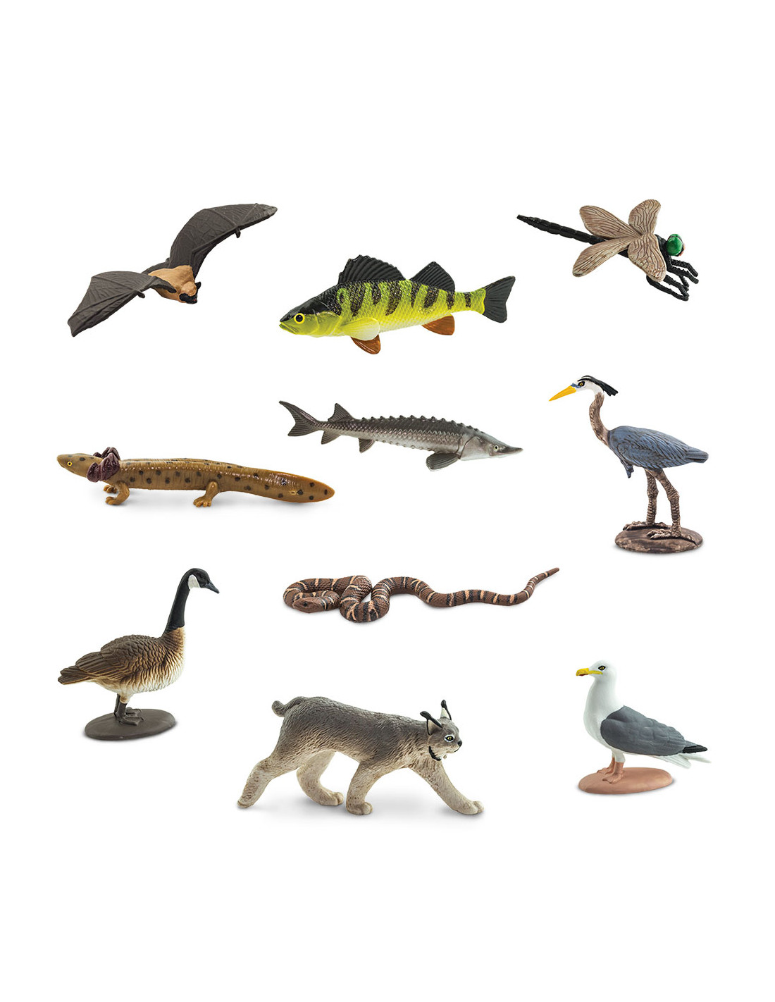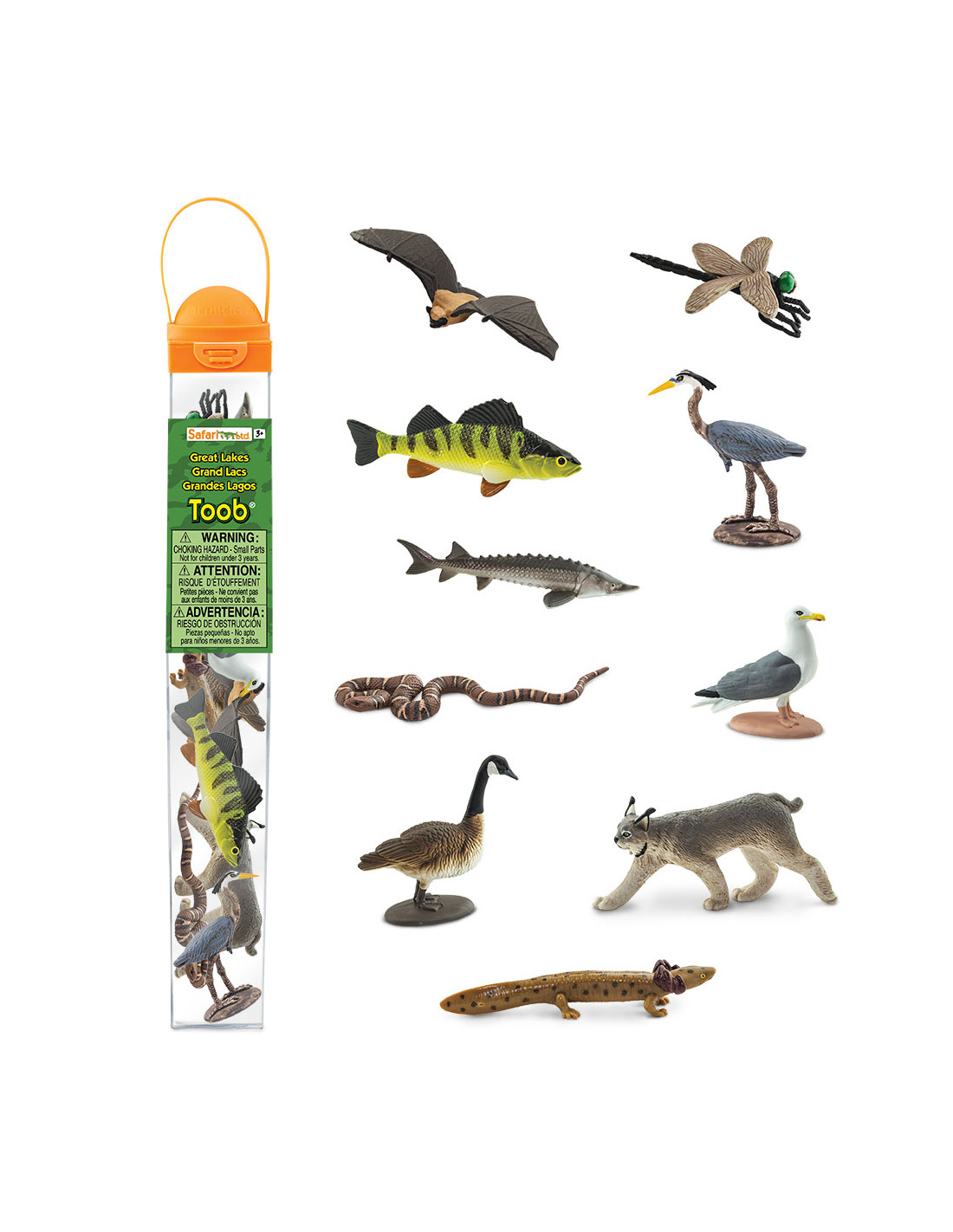 V této tubě naleznete celkem 10 přesných miniatur představujících rozmanitou faunu v oblasti Velkých jezer. Baleno v praktické cestovní tubě.
