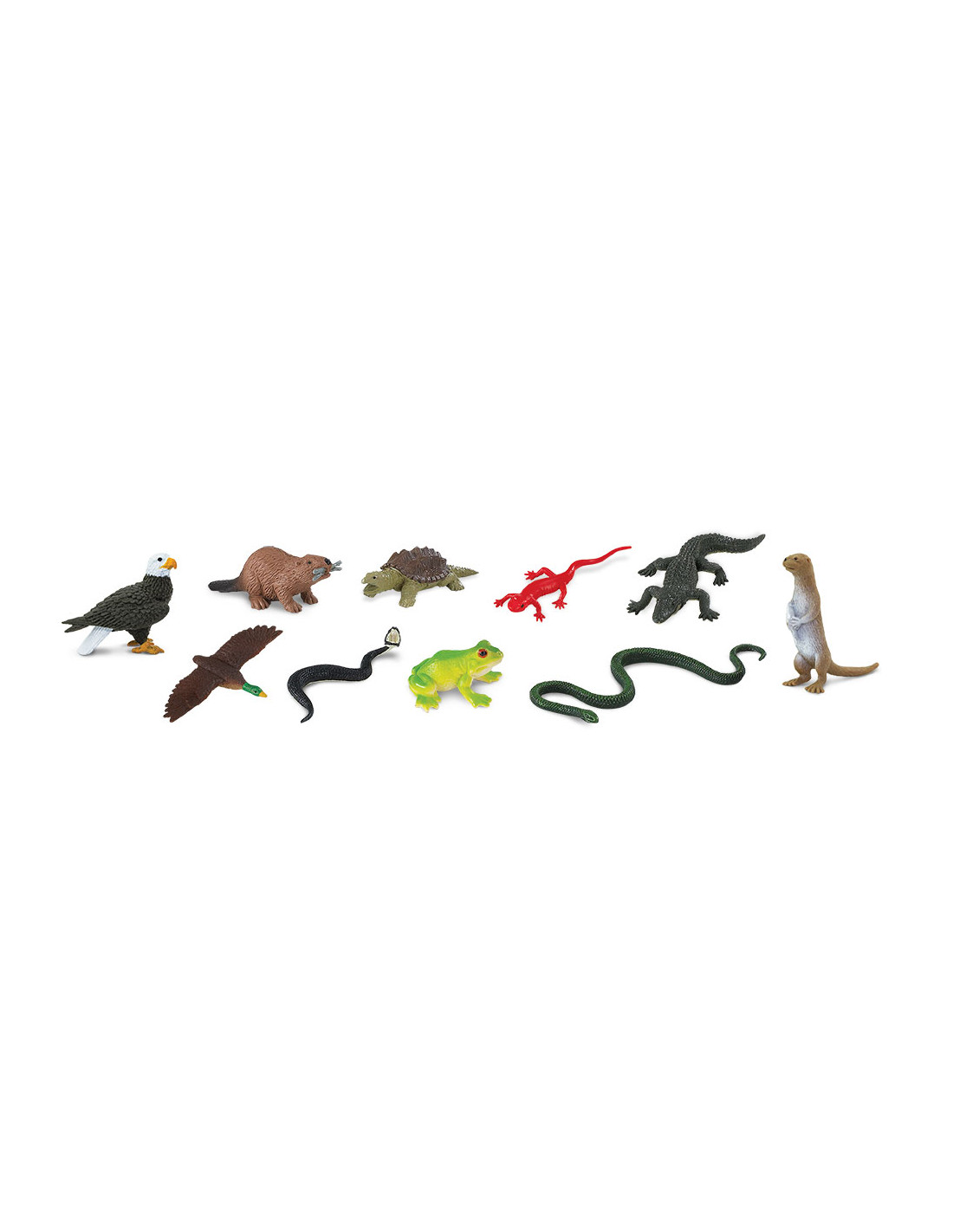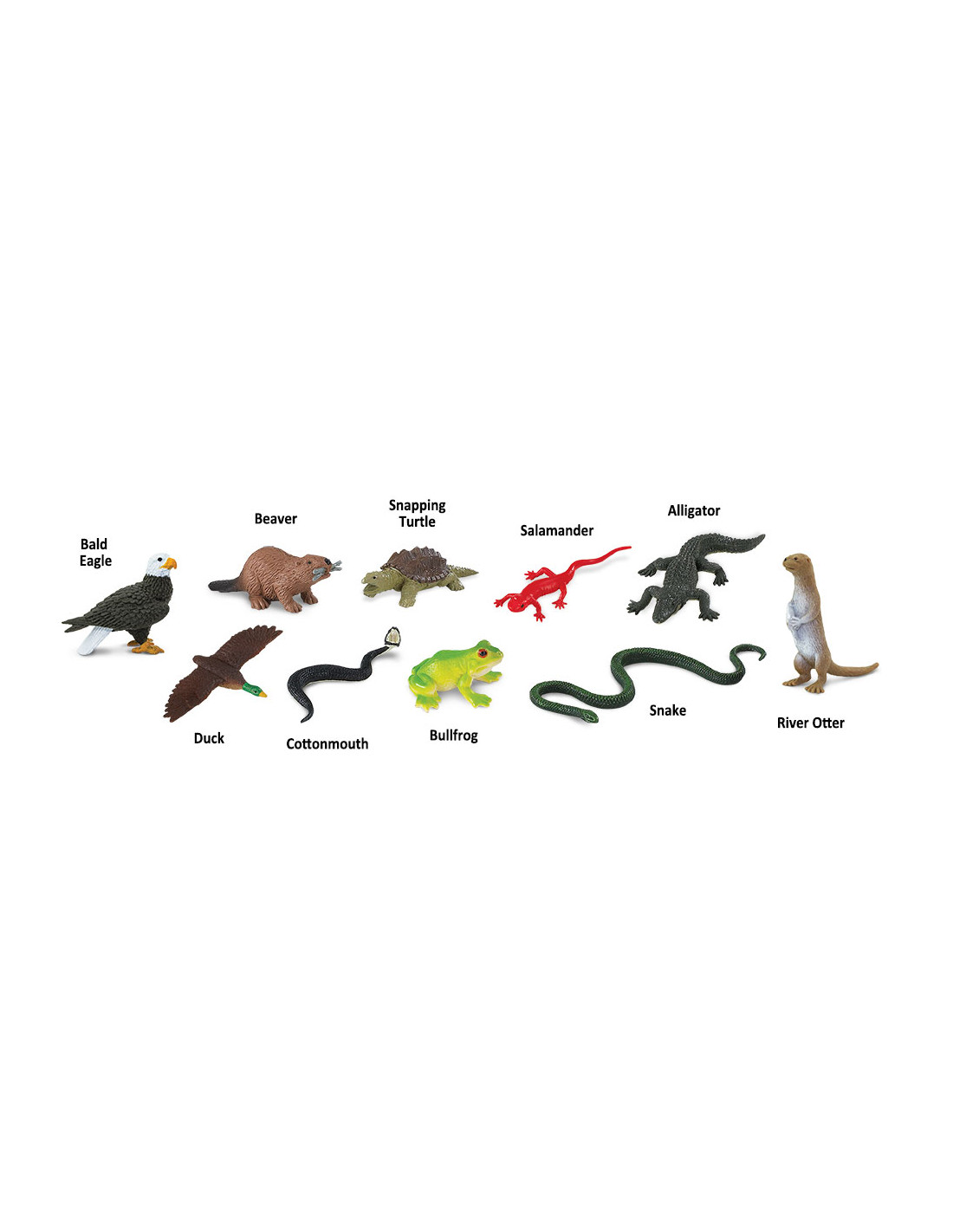 Tuba obsahuje 10 figurek zvířat, která mají domov u řeky a v řece – bobra, orla bělohlavého, kajmanku dravou, mloka, žábu, hada, vydru říční, aligátora, kachnu divokou, ploskolebce vodního.