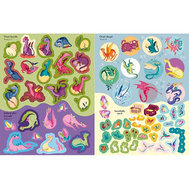 Velká samolepková knížka s populárním motivem draků. Uvnitř děti najdou velké scény k dotvoření a hromadu samolepek – ideální na „tiché chvilky“, cesty autem i tvoření u stolu. Knížka má 24 barevných stran a 8 stran samolepek.