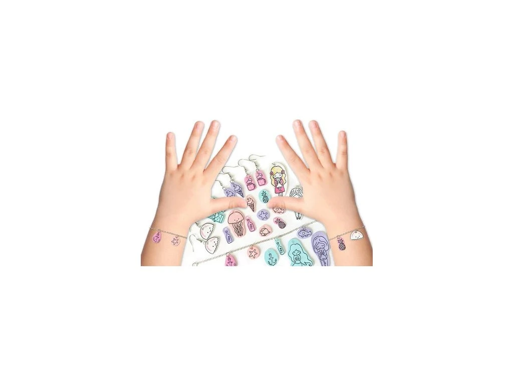 Vytvořte si vlastní veselé náušnice, přívěsky a náramky ze smršťovací (shrink) fólie. Stačí motiv nakreslit podle šablony nebo z fantazie, vystřihnout a zapéct v elektrické troubě – výřez se zmenší přibližně na polovinu a zpevní, takže vznikne krásný, odolný přívěsek připravený k nošení. Ideální kreativní aktivita pro děti od 7 let – rozvíjí jemnou motoriku, trpělivost a kreativitu.