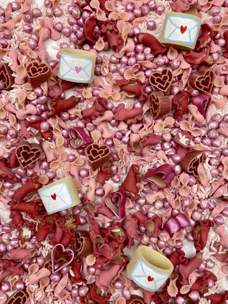 V této speciální limitované směsi děti objeví růžově zbarvenou rýži, třpytivou cizrnu, různé tvary těstovin a motivy inspirované láskou – srdíčka, růže, mini motýlky a dokonce malé psaníčka plné romantiky.